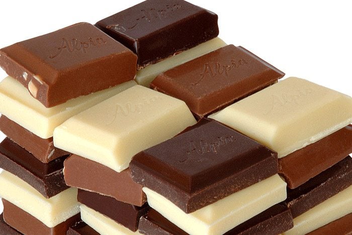 *witte chocola: Cacaoboter, melkpoeder en suiker.